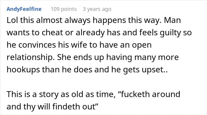 People online found it funny how the one who wants an open marriage always ends up regretting it