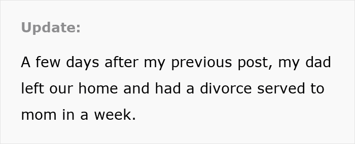 Netizens expressed sympathy for the poster that she was stuck in all the drama, but they were glad that her mom was leaving her toxic dad. Don’t you agree with them? Feel free to jot down your thoughts in the comments below!