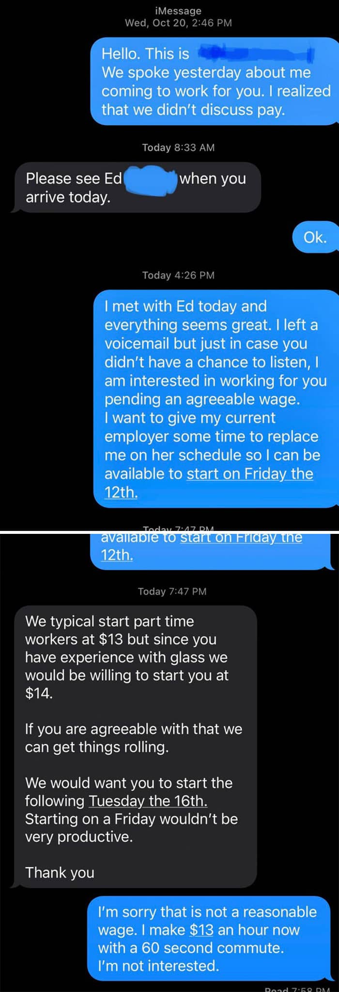 “Tried to re-enter my trade with a part time opportunity. Apparently this guy pays glaziers less than I already get as a gas station attendant.”