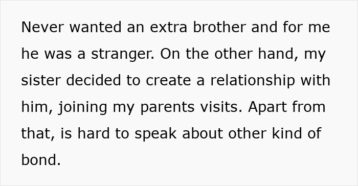 While his sister chose to build a relationship with their older brother, he remained distant, seeing him as a stranger due to minimal contact