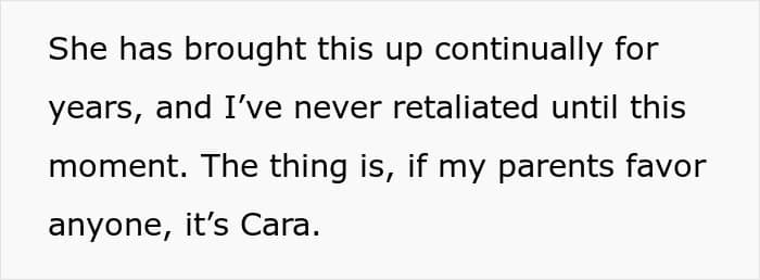 Parental favoritism is not uncommon. Psychologists have done a lot of research over the years and found that parents tend to favor daughters and oldest siblings. In this story, although both siblings are sisters, the eldest still seems to be treated as the favorite.