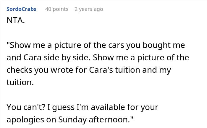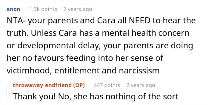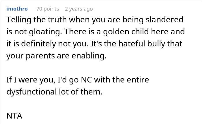 Most commenters sided with the sister, vilifying the parents and the golden child