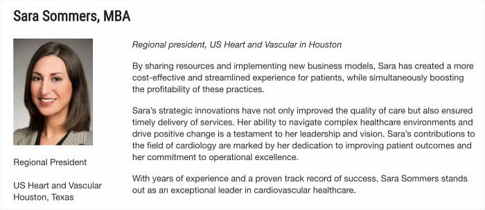 “With years of experience and a proven track record of success, Sara Sommers stands out as an exceptional leader in cardiovascular healthcare,” the magazine wrote.