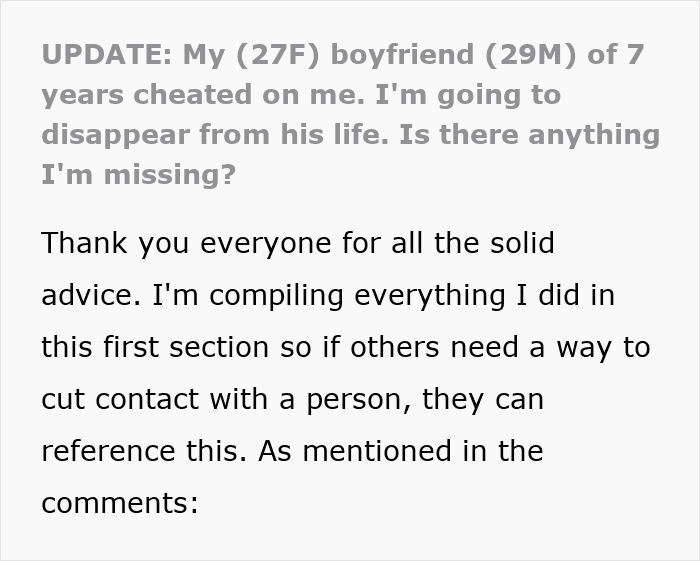Later, the woman shared an update about how she cut her (now ex) boyfriend out of her life, and what the fallout was like