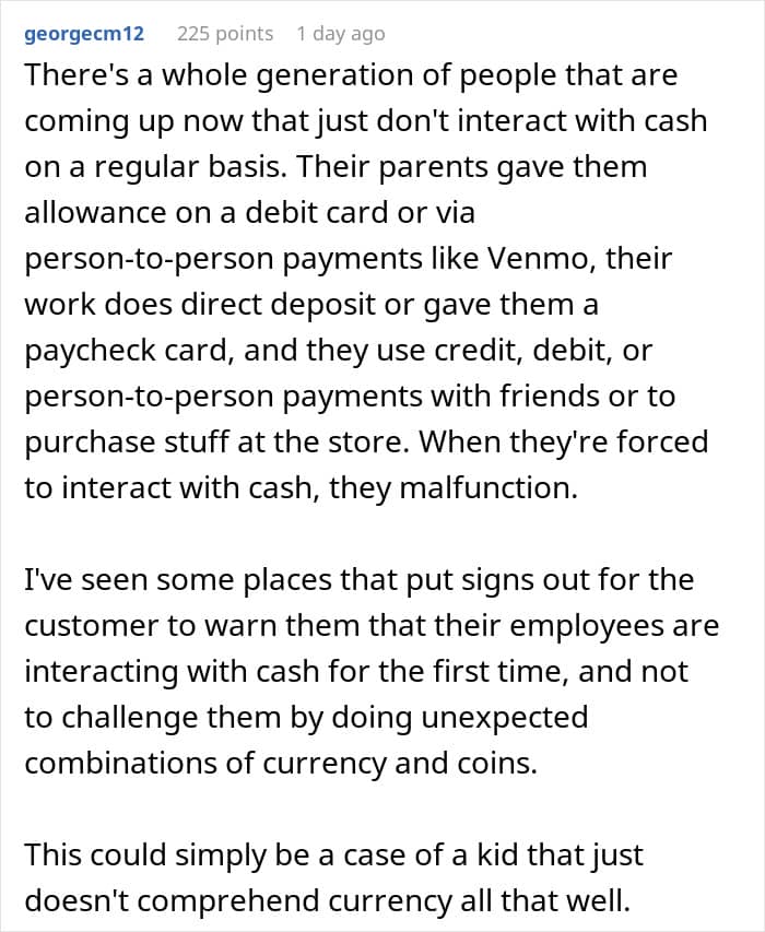 So while the story of the awkward exchange might seem amusing on the surface, it also offers a glimpse into how draining this job can be. Behind every wrong order or math mistake is often someone tired and doing their best to stay composed in an environment that rarely slows down.