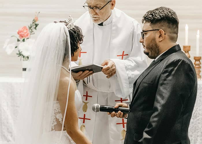 The priest called the bride by the wrong name the entire 2-hour long Catholic ceremony. The poor bride corrected the priest each time the first 10 times or so. The priest was the groom’s uncle. The groom never corrected him.Eventually, the bride looked like she had tears in her eyes and was going to start bawling so she stopped correcting him. The priest just kept using the wrong name through the end of the ceremony. Afterwards, I wondered if the couple was even legally married since he never got her name right.