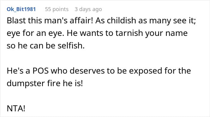 Many sided with the woman and had no empathy for the cheating husband