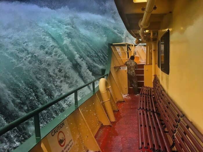 #20 My Cousin’s Sister-In-Law Works On A Tugboat That Tows Oil Platforms Across The Ocean. In All Weather Conditions