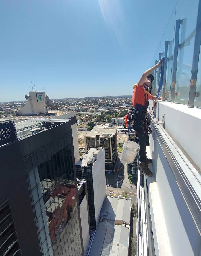 #41 This Is How We Clean The Metal Structure On The Outside Of Glass Balustrade. One Of Our Jobs