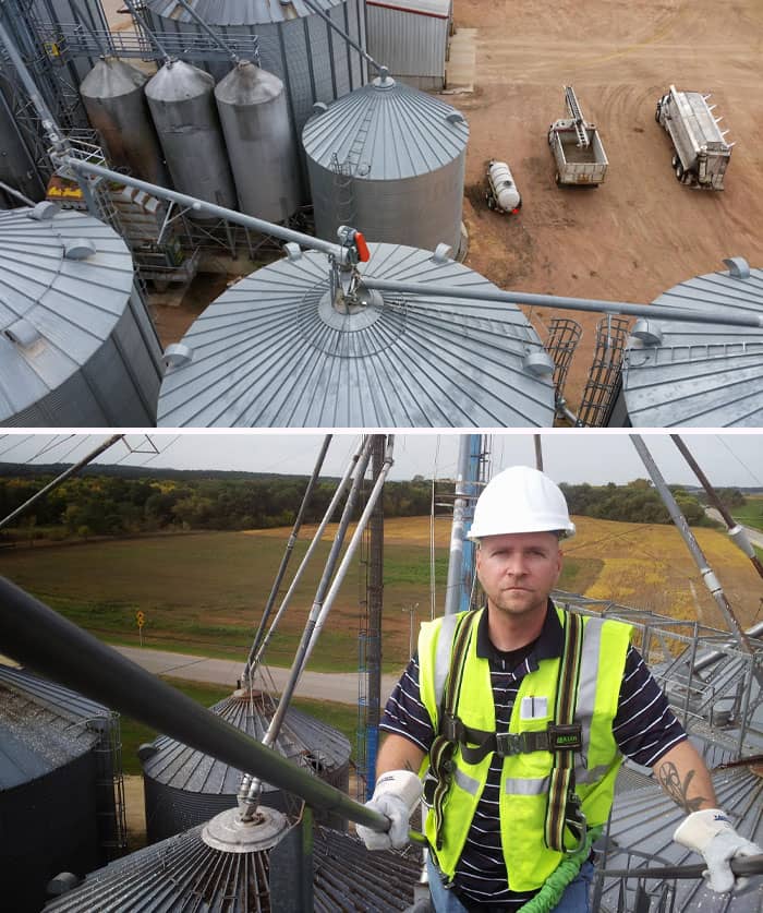 #76 Moved To Wisconsin To Take A Job In 2014 As A Grain Auditor. There Would Be “Minimal Climbing Required.” This Is 11 Stories Up