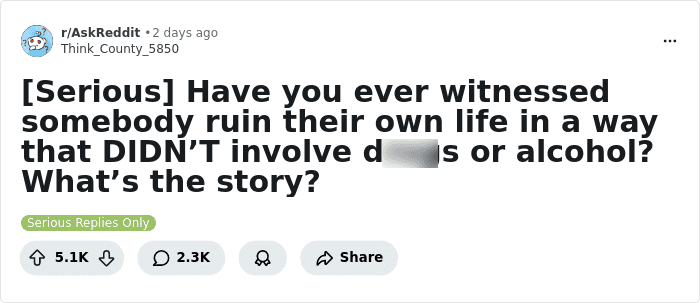 But it’s possible to ruin everything even without taking a sip or a hit. Reddit user Think_County_5850 asked the online community to share stories of people making life-changing mistakes while sober. Here are the most memorable ones we found among the thousands of replies.