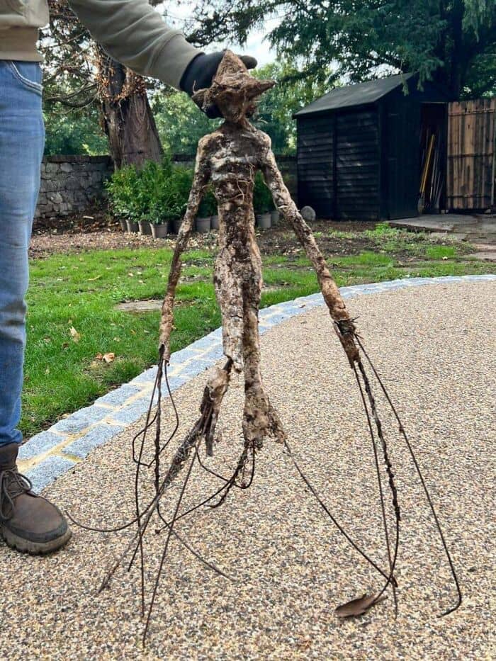 I was walking in the woods near Copenhagen and stumbled upon this weird artefact thrown in the bushes. I put it on the trail for a photo and left it there for someone else to be creeped out. I wonder if I should have kept it?