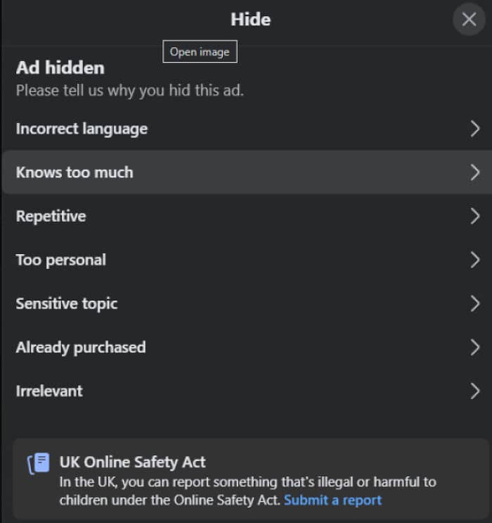#61 Reporting An Ad On Facebook Marketplace Gives The Option Of “Knows Too Much”
