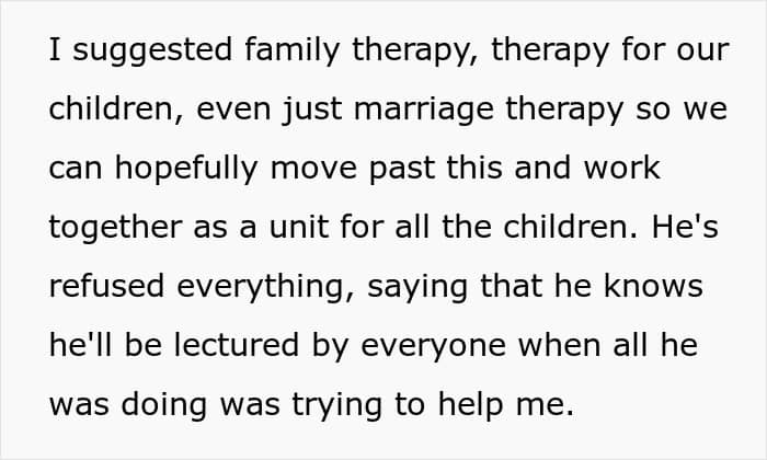 Redditors shamed the woman’s husband and told her that she and her kids definitely need therapy