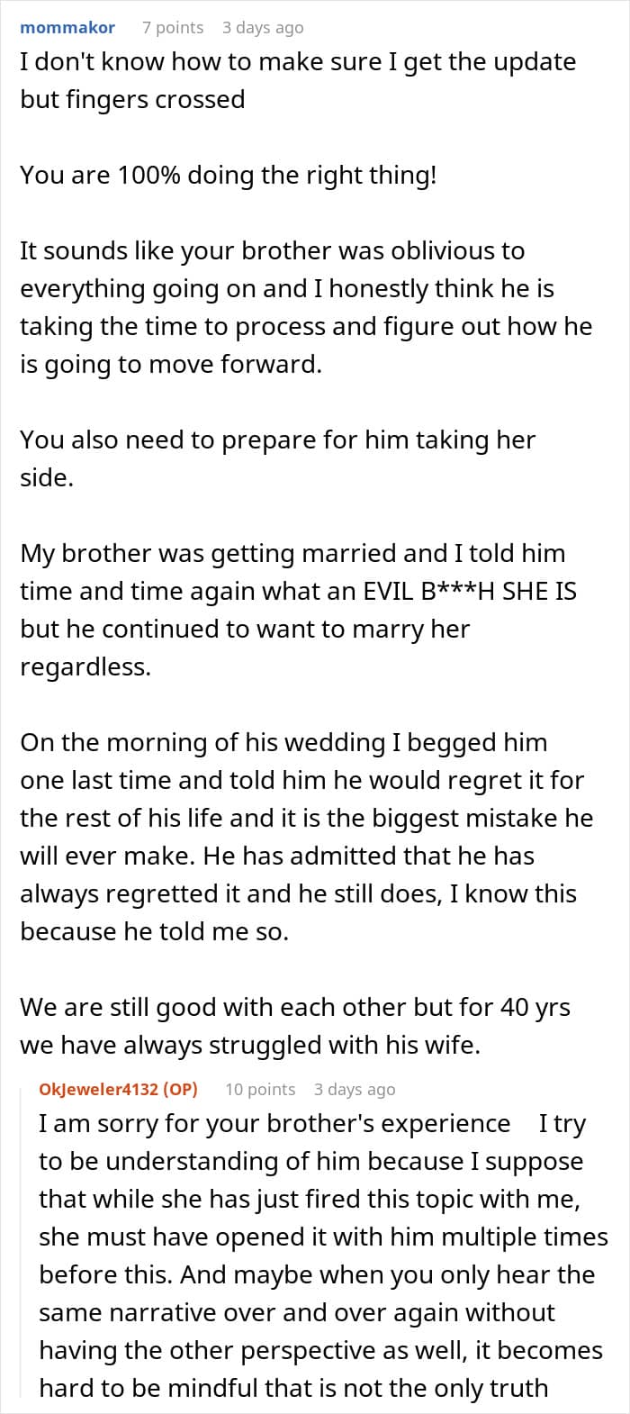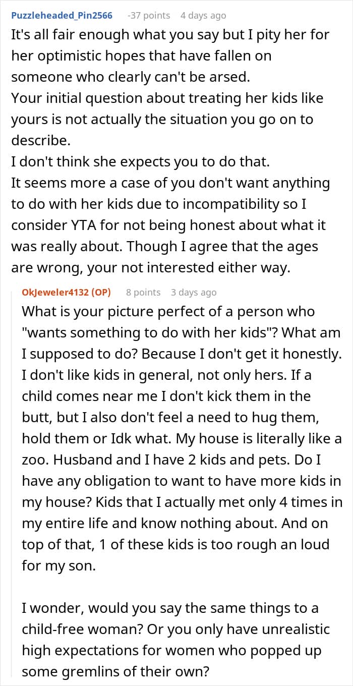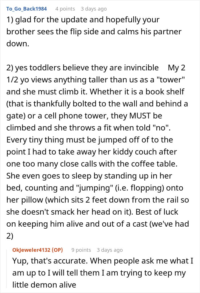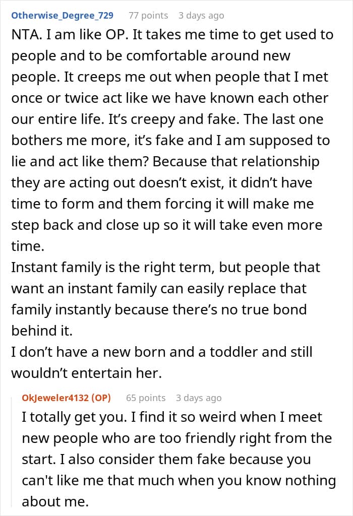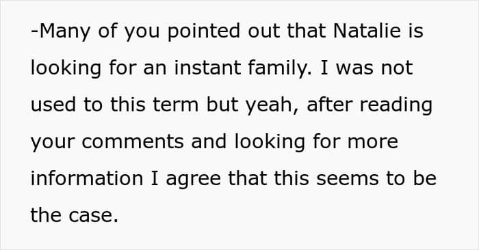 Ultimately, the worst of the “instant family” mentality is that it skips over the most important step: consent. Adult relationships, whether between step-children and step-parents, in-laws and new partners, or extended relatives and significant others, grow healthiest when people are afforded the autonomy to move at their own speed. When all parties’ roles and boundaries are respected, the resulting family may not be instant, but it’s a hell of a lot better chance it’ll be real, solid, and founded on actual connection. And if you want to know what happens next, she later shared an update that can be found below.