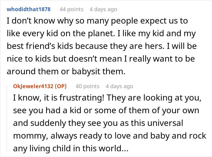 RELATED:Some folks think that their relatives and even in-laws should be required to help them with kids