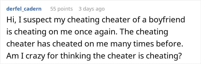 RELATED:When a person cheats once, every little thing can become suspicious to their partners afterward