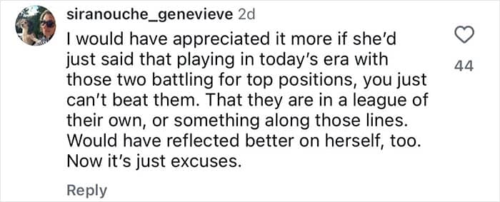 “This girl has a weak argument and is really insulting to the other tennis players,” wrote one netizen.