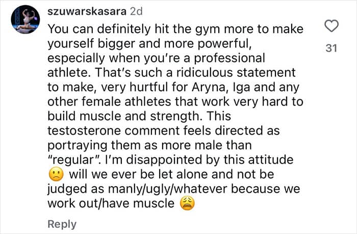 Highlights23-year-old Marta Kostyuk sparks controversy by hinting that top players’ “testosterone levels” affect tennis rankings.“There are many, many things I can do to be better, but they have an advantage over me,” Kostyuk claimed.Aryna Sabalenka claps back at the “insulting” accusations with a glamorous and racy social media post.