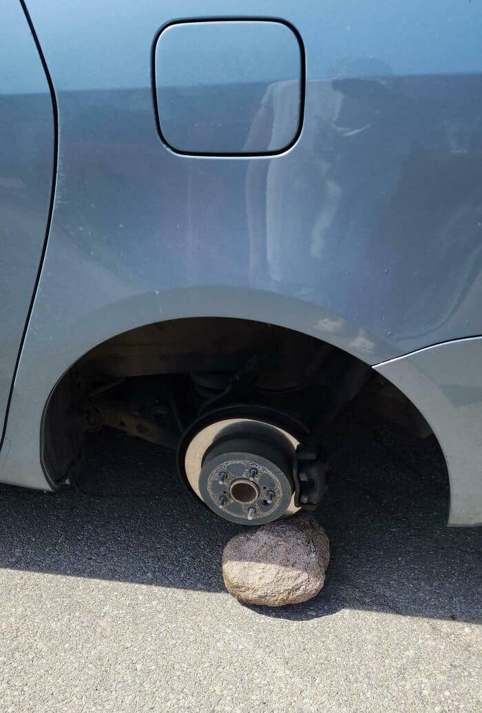 #25 Went Out To My Car To Go Run An Errand, And Found One Of My Tires Gone