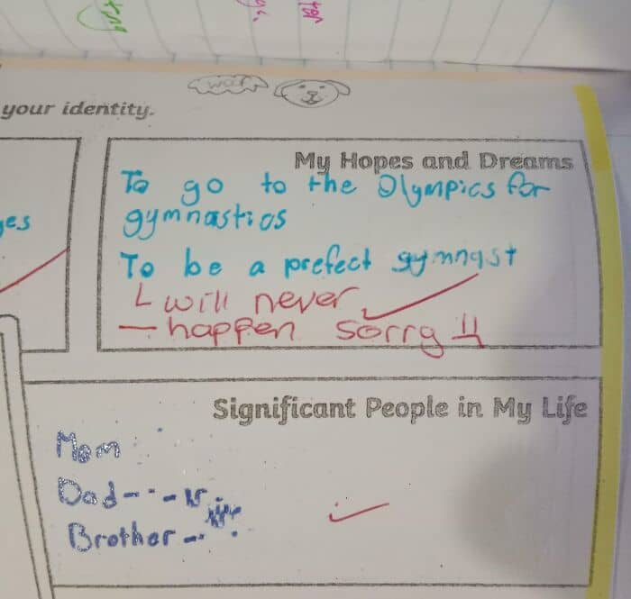 My 11-year-old daughter’s teacher wrote this comment on her homework. I’m absolutely flabbergasted and angry. This is after my daughter just competed in gymnastics nationals a month ago.