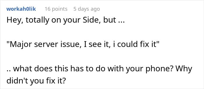 A netizen shared their story of malicious compliance when their boss passed a “no phones at work” rule without thinking of the consequences. So when servers went down, suddenly a minor problem became a larger mess. We reached out to the IT worker who posted the story via private message and will update the article when they get back to us.