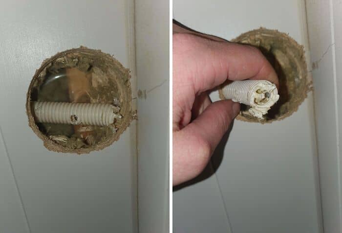 I’m an HVAC technician and was installing a split. He wanted it very close to the corner, and I was prepared to hit a little bit of the stud, but then I would angle it away from the stud to go to the outside unit. I was thinking that it could be electric cables behind it, and I should have brought my cable scanner. The client told me that he was very sure it’s nothing behind right there, except for the stud.