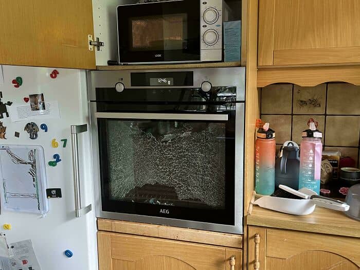#25 Leaving For Vacation Today And Put The Oven To Self-Clean. The Middle Panel Decided It Didn’t Want To Live Anymore