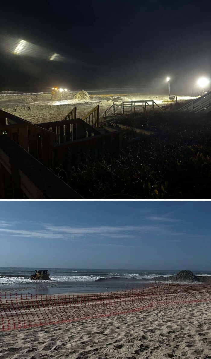 Beach reclamation in progress. Heavy equipment is running right outside our windows 24 hours a day.