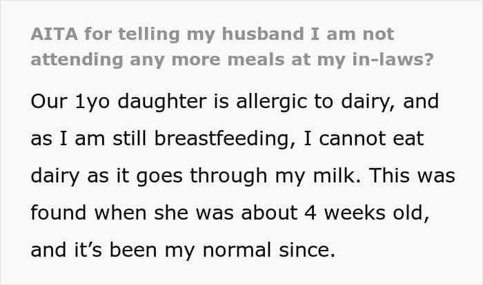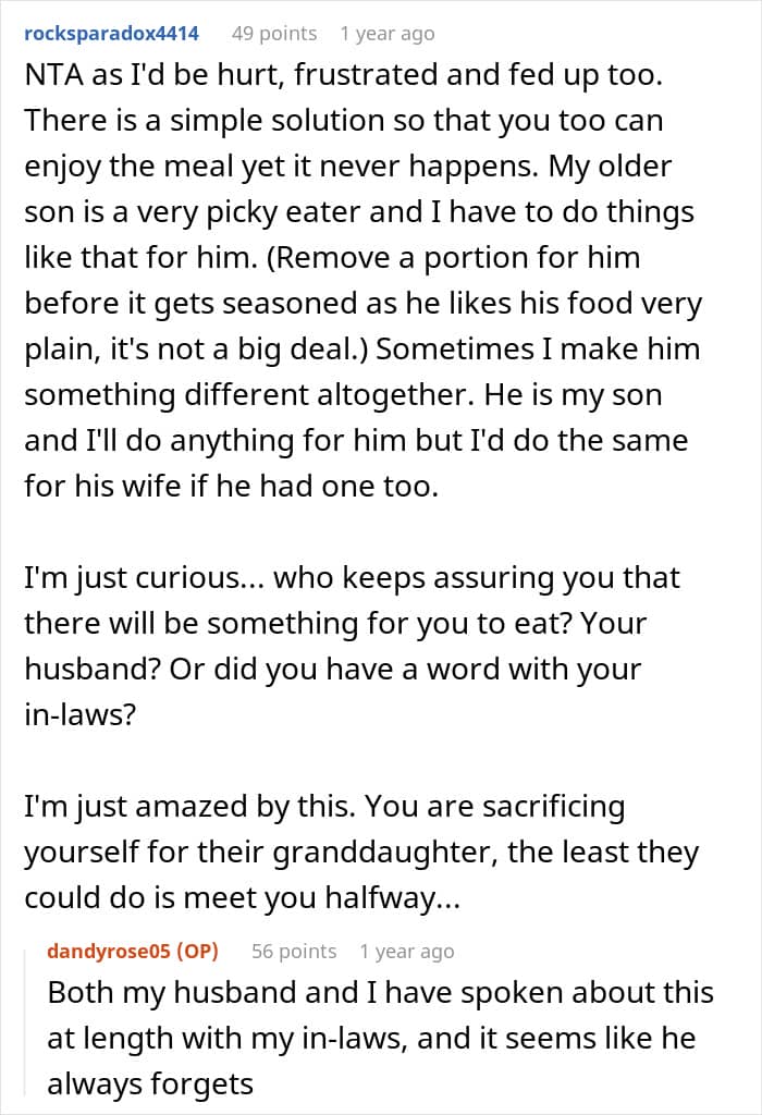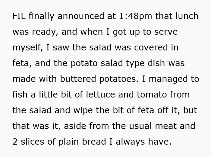 This MIL completely ignored this, leaving her DIL starving at every family dinner