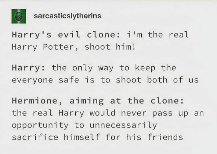 In the online world, there’s almost an unwritten rule that something so popular must be memed. And, in the case of “Harry Potter,” it’s true; the subreddit “Harry Potter memes” is dedicated to exactly that. So, wizard Pandas, take out your wands, put on your pointy hats, and have a hearty chuckle at these HP memes!