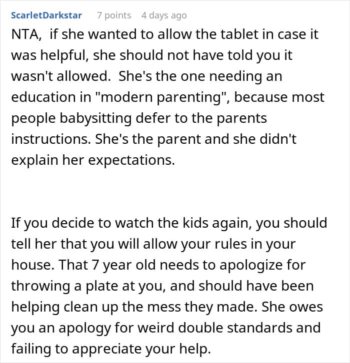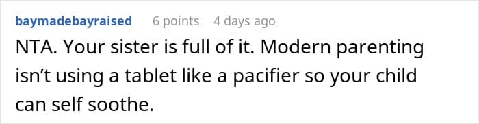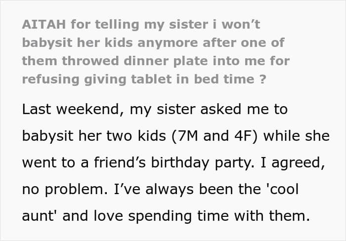 One woman went online to share how babysitting her niece and nephew turned into an absolute nightmare recently. She had everything under control until the dreaded bedtime arrived. Her nephew demanded his tablet, but the “cool aunt” stood her ground. The 7-year-old then threw a massive tantrum, hurling a dinner plate at her. But the part that really upset the woman was when the kid’s mom berated her for not letting him “self-soothe” with his device. The aunt is now wondering if she was in the wrong. We reached out to clinical psychologist, author and educator Dr Martha Deiros Collado for her expert take on the matter.