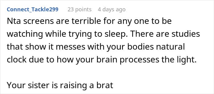 “This is often why children enjoy sleepovers with grandparents, aunties, etc… because they know some of the boundaries will be more flexible and they will get some freedoms they don’t get usually with their parents,” said Deiros Collado. “This is absolutely normal, healthy, and appropriate when the adults caring for the children are safe loving adults trying their best. And it sounds like Auntie did her best, and was caring and loving towards her nephew and niece, even during challenging moments during the evening.”