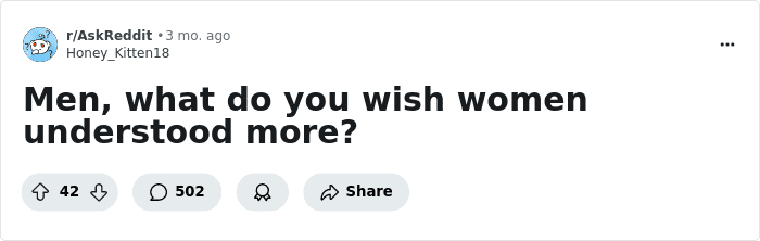 Clearly, there’s a need for better communication and understanding to bridge this divide. To share their side of the story, men on Reddit recently opened up about what they wish women would understand about them.