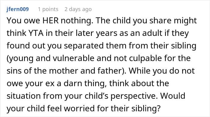 It’s exactly what happened to one man who says he has “no respect for either of them.” Imagine his surprise when his philandering ex-wife (whom he no longer speaks to) approached him to look after the child she has with her new husband.