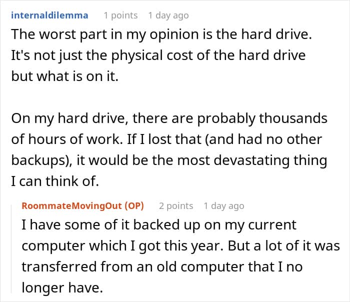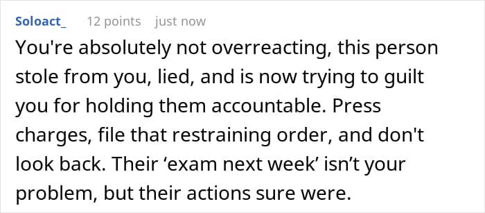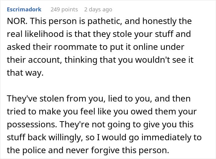 However, she is still very conflicted about taking legal action. “I talked to my sister who said it’s basically weaponizing the justice system, which feels really unfair too, especially now that I got a lot of the stuff back,” u/RoommateMovingOut says.