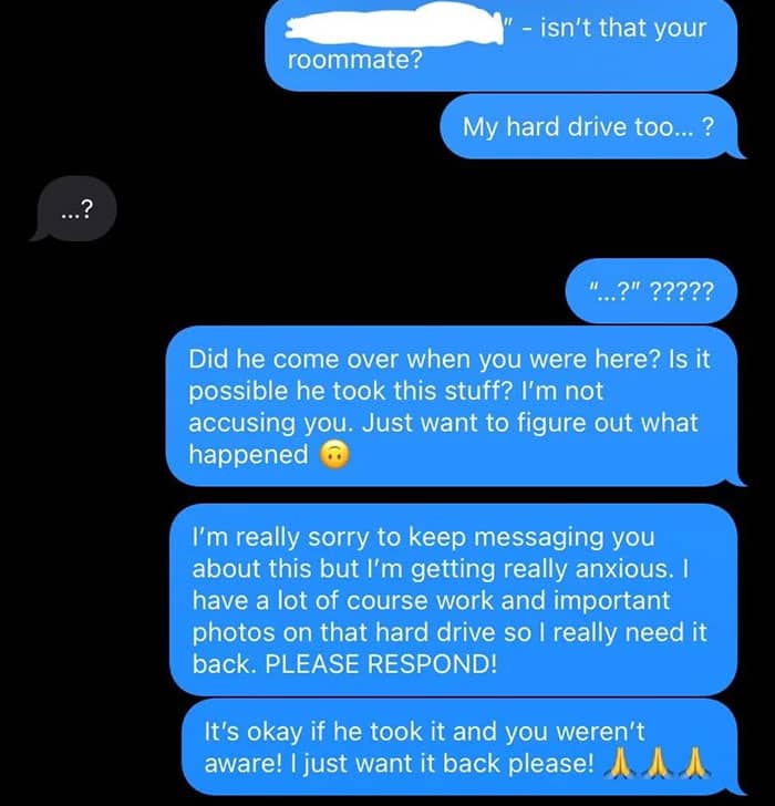 What’s not cool is when your friends and roommates start stealing from you, and then they have the gall to gaslight you about it. That’s what happened to this woman when she offered a friend to stay at her place for free. And when she confronted the friend about it, all he had to say was that she’s “Really messing up [his] day.”