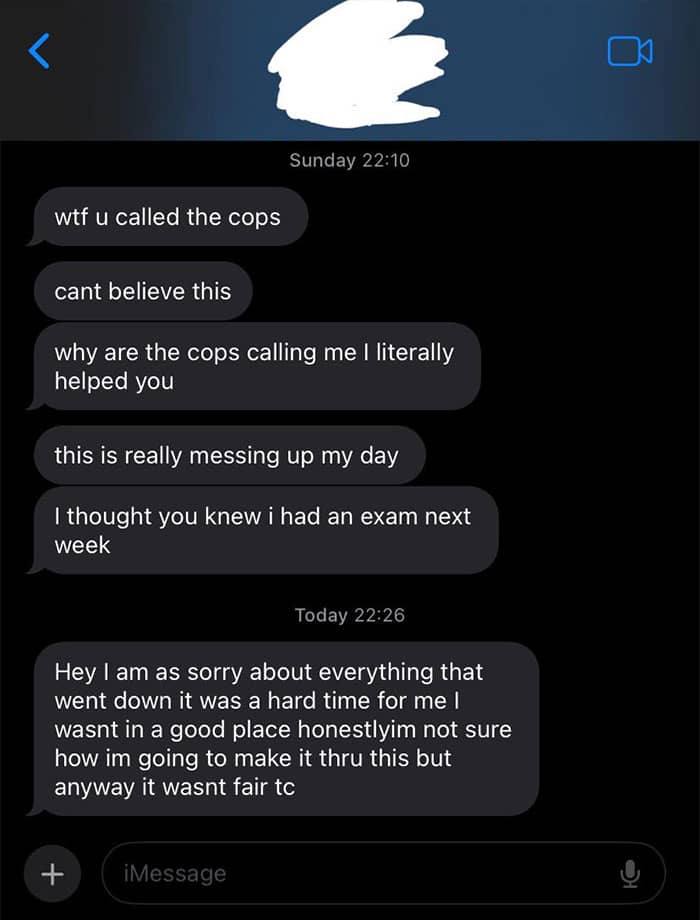 After she filed a police report, the friend finally got in touch: “This is really messing up my day”