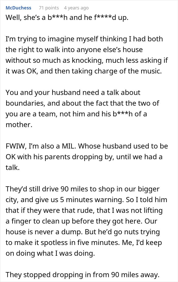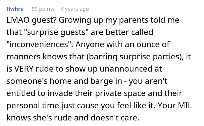 But one woman had the misfortune to have to deal with a MIL who just showed up at random times