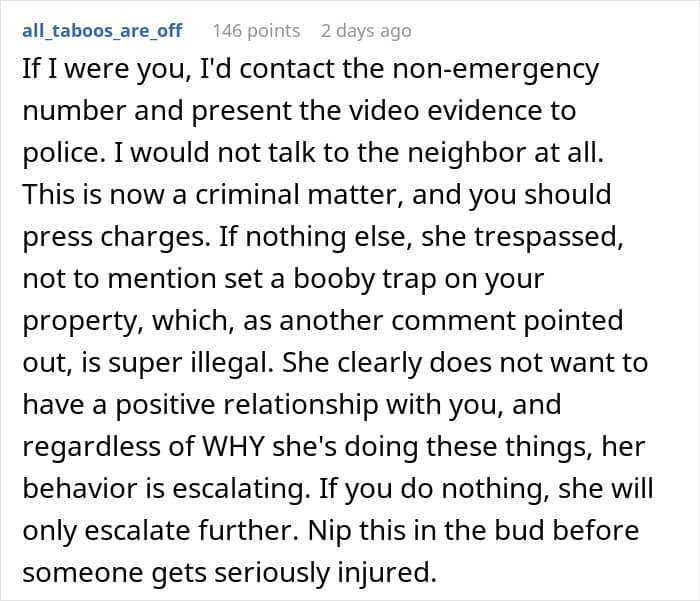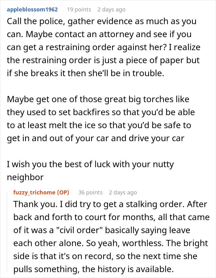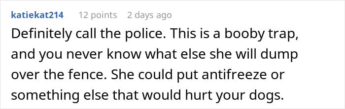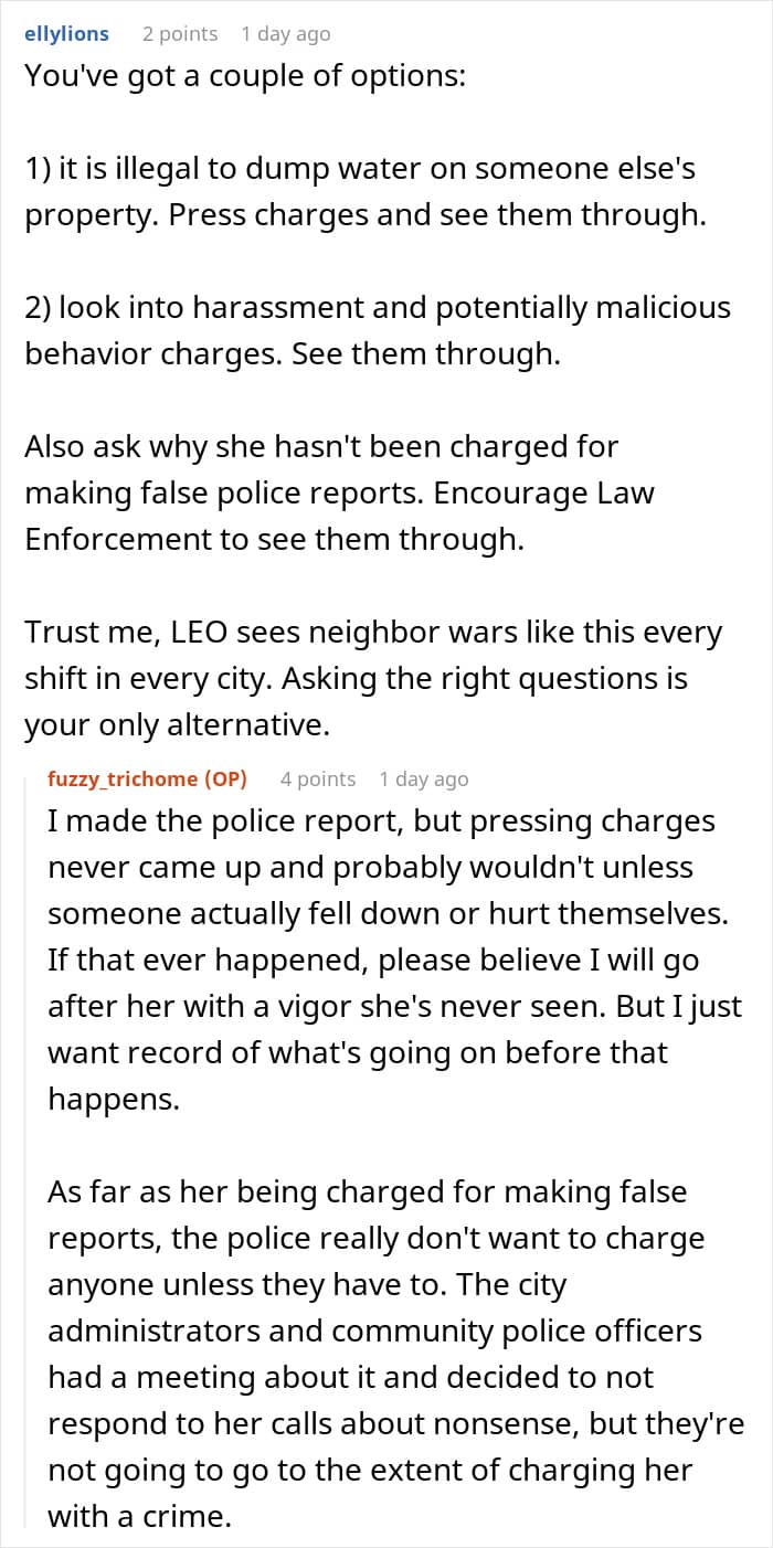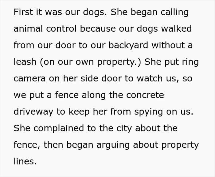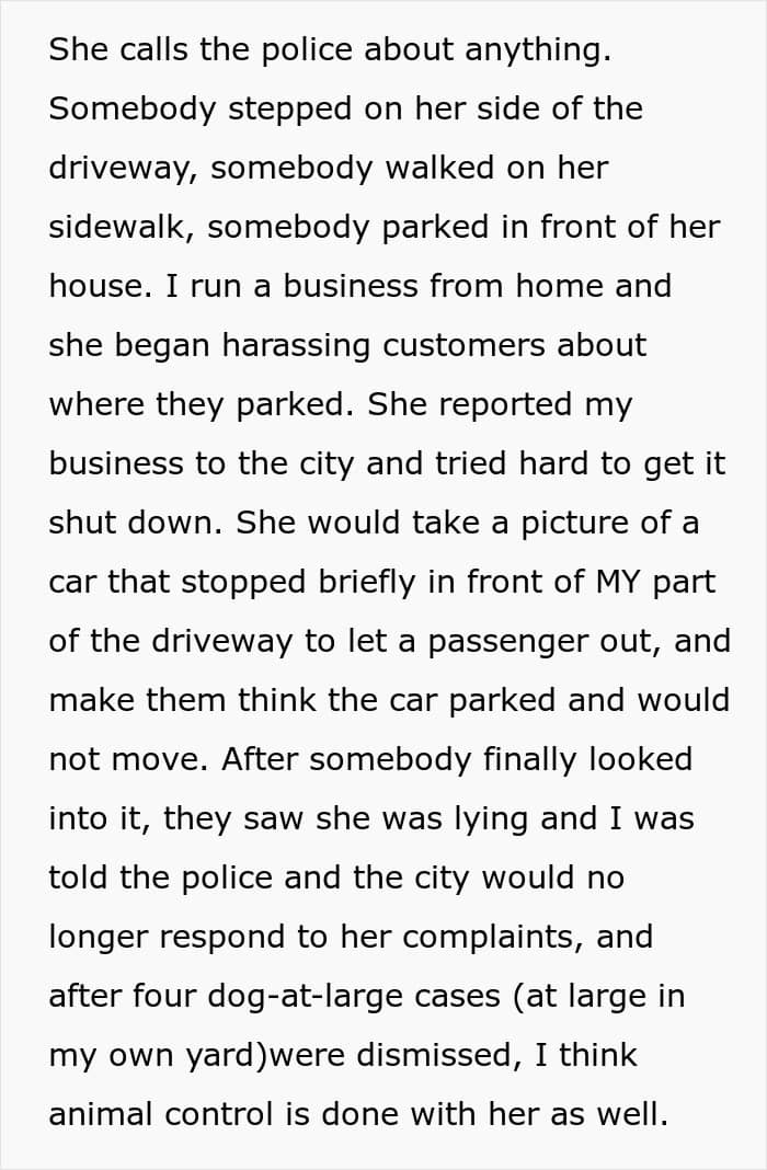Unfortunately, the latter always seem to be the most relentless. The woman living next door to this Redditor’s family, for instance, has been harassing them for years—spying on them, hurling rude remarks, filing complaints with animal control, and constantly involving the police.