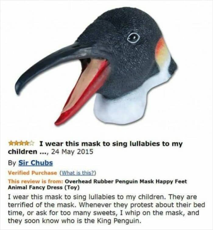 #25 Parenting Tips In An Amazon Review For A Penguin Mask