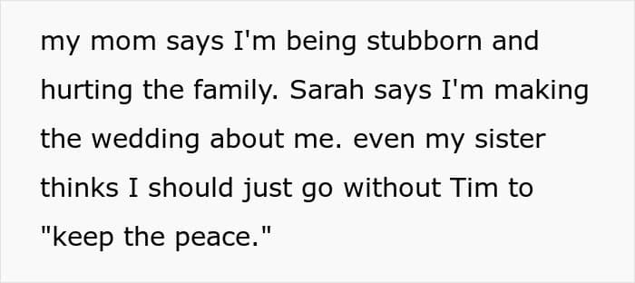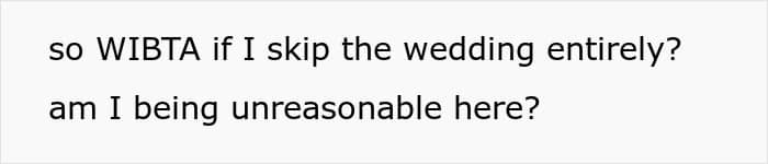 In response, the woman decided that if her husband wasn’t welcome, she wouldn’t be attending either—even if it meant not seeing her brother get married. Now, her family is calling her selfish for taking a stand. Read the full story below.