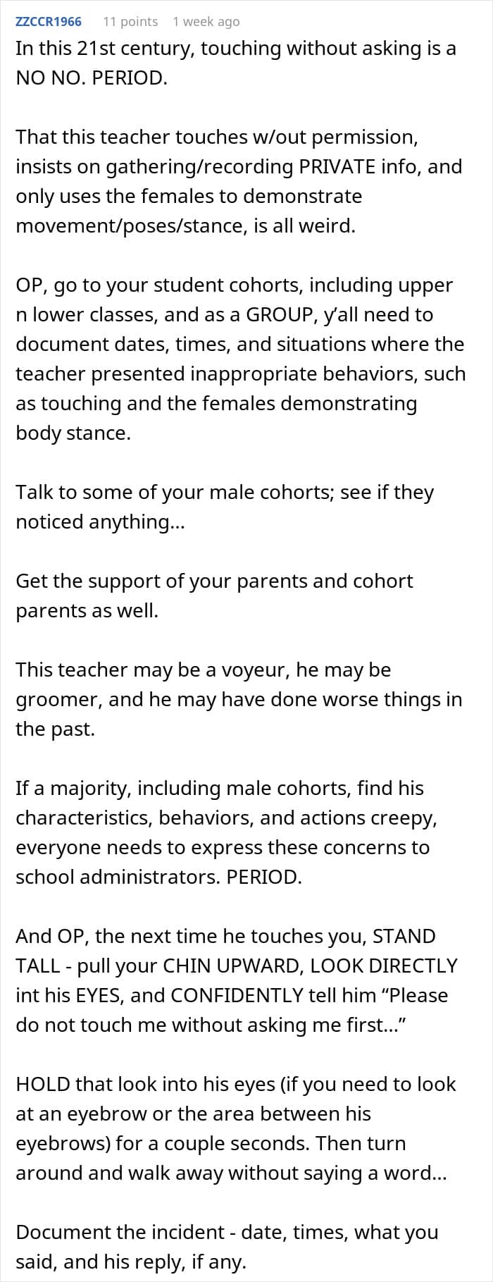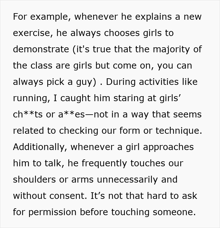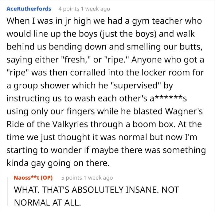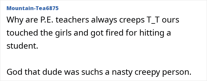 Some readers even shared their own stories about inappropriate P.E. teachers
