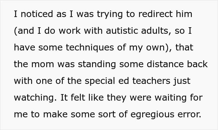Ultimately, the school teacher’s decision to lecture the narrator was a completely inappropriate way to handle the situation. According to experts at Mastermind Behavior, when a misunderstanding about autism occurs in public, the goal should be to “promote understanding and empathy,” not to assign blame.
