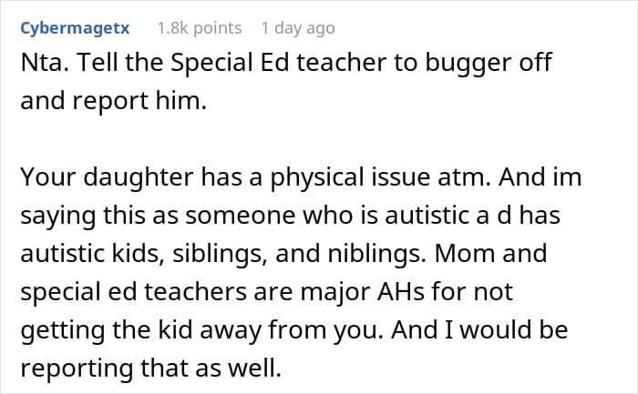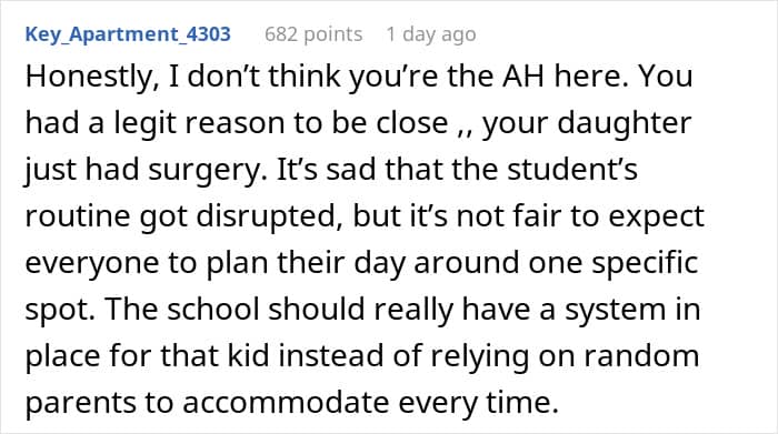 But the drama got an official sequel the next day. The special ed teacher sought her out to deliver a lecture on her “lack of kindness,” claiming her refusal had “fully disrupted” the boy’s day. Now, she’s being officially shamed by the school’s staff, all because she chose to prioritize her own daughter’s acute physical pain over another child’s established routine.