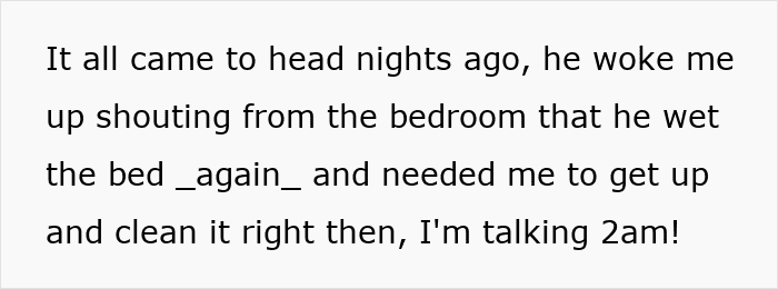 For today’s Original Poster (OP), this was her reality. With a husband who suffered from serious heart problems, one of his treatments caused excessive urination, leading to repeated bedwetting incidents. And while that was tough for both of them, cleaning became a nightly routine until she finally reached her breaking point.