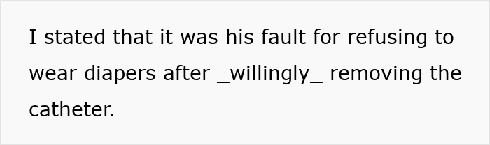 Netizens insisted the OP was not at fault for refusing to clean her husband’s bed repeatedly. They emphasized that her husband’s refusal to use the diapers or the catheter made the situation unnecessarily difficult. They also highlighted the extreme burden placed on her, noting that caring for her husband under these circumstances is effectively a full-time job.