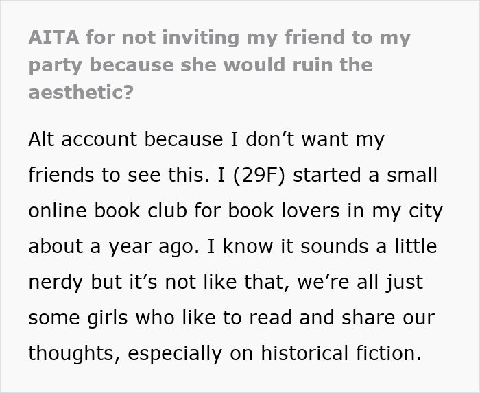 For instance, one woman shared how she organized a book-themed ball for her club but decided not to invite her close friend, fearing she’d “ruin the aesthetic” by showing up underdressed. When the friend eventually found out, it led to hurt feelings and silence. Now, the internet is split: was the host simply protecting her vision, or was she being unnecessarily shallow?