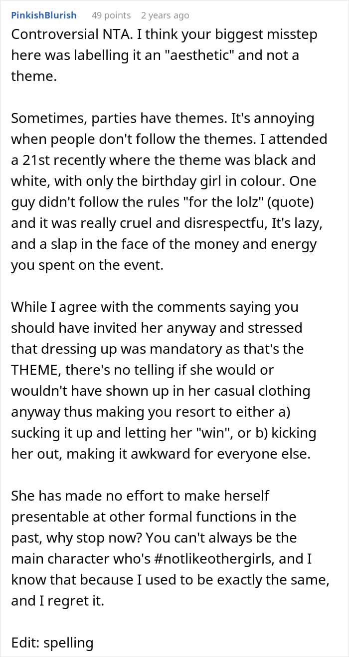 Many online felt the host should have still invited her friend, but made it clear that dressing according to the theme was required