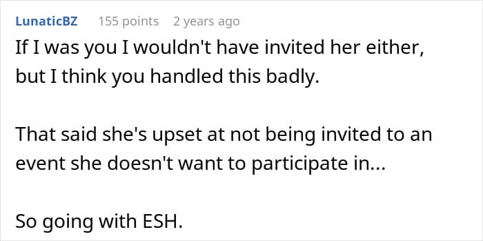 Some commenters argued that both women were at fault, one for excluding, the other for not being open to compromise